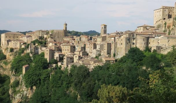 Heute besuchen wir die „Città del Tufo“. Wir beginnen mit Pitigliano, der größten und eindrücklichsten dieser Städte, die bis zum Zweiten Weltkrieg auch eine große jüdische Gemeinde beherbergte. Nach einem Rundgang fahren wir weiter über Sorano, dessen Panorama wir genießen, nach Sovana. Dort besichtigen wir die beiden romanischen Kirchen, bevor wir in der „Tavernetta“ ein typisches hiesiges Mittagessen bekommen. Am Nachmittag besuchen wir die in Nähe gelegene etruskische Nekropole mit ihren eindrücklichen Höhlengräbern und den „Vie Cave“, den Etruskerstraßen, die viele Meter tief in den Tuffstein gegraben wurden. Auf der Heimfahrt gibt es noch einen kleinen Halt an den Schwefelquellen von Saturnia, wo man zumindest die Füße ins Wasser halten darf.