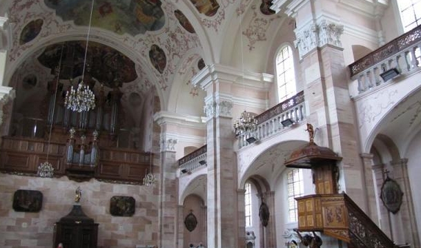 Am Vormittag fahren wir zur Abtei Ebersmünster. Dort erleben wir bei einer Führung durch die schönste Barockkirche des Elsass auch die Silbermann-Orgel, die zu den am besten erhaltenen Instrumenten des berühmten Meisters gehört. Anschließend besuchen wir die Bücherstube eines gelehrten Humanisten aus dem 16. Jahrhundert: die Bibliothek des Beatus Rhenanus in Schlettstadt/Selestat, eine der wenigen in Europa, die bis heute im Originalzustand erhalten ist.