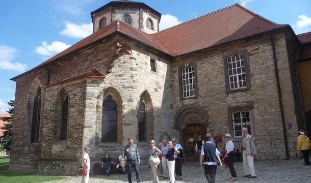 Vormittags fahren wir nach Quedlinburg. Aber wir nähern uns der Stadt auf besondere Weise: mit der Dampfeisenbahn. Von Harzgerode aus bringt uns die Schmalspurbahn in gemächlicher Fahrt durch die Waldtäler des Harz nach Quedlinburg. Die Stadt mit über 1000 Fachwerkhäusern aus sechs Jahrhunderten war im Mittelalter eine Königspfalz und Sitz eines adligen Damenstiftes. Wir machen zunächst einen kleinen Rundgang durch die Altstadtgassen mit ihren wunderschönen Fachwerkhäusern, bevor wir hier unser Mittagessen erhalten. Dann spazieren wir hoch zum Schlossberg mit der eindrücklichen, romanischen Stiftskirche Sankt Servatii. Besonders sehenswert ist hier neben der Architektur der Domschatz. Die meisten Stücke wurden von den Ottonen gestiftet, aber einzelne Bibelfragmente mit Malereien gehen sogar bis auf das 4. Jahrhundert zurück. Bei einer Führung werden wir Genaueres darüber hören.