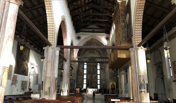 Wir fahren heute in den Westen des Friauls. Unsere erste Station ist Codroipo, wo sich die prächtige Villa Manin befindet, der Landsitz des letzten Dogen von Venedig. Anschließend Fahrt in das Städtchen San Vito al Tagliamento, das fast als italienische Modellstadt bezeichnet werden könnte: Rund um die zentrale Piazza del Popolo befindet sich alles, was der Mensch, jedenfalls der italienische, zum Leben braucht: Kirche, Theater, Bar, Tabaccheria, Bank, Gelateria und Modegeschäft. Auf beiden Seiten der Piazza steht jeweils ein Stadttor und dazwischen das schönste Rathaus des Friaul: der jasminbewachsene Palazzo Rota. Gleich um die Ecke liegt das Hotel „Il Patriarca“, dessen Restaurant La Piramide von der apulischen Schwiegertochter des Besitzers geführt wird. Dort werden wir zu Mittag essen. Anschließend fahren wir nach Sesto al Reghena. Das kleine Dorf in der Tagliamento-Ebene ist um die Abtei Santa Maria in Silvis herumgebaut, einen Klosterkomplex mitten im Grünen, dessen Kirche und Vorhalle mit Malereien des 12. und 13. Jahrhunderts geschmückt sind. Von dort aus Heimfahrt nach Udine.